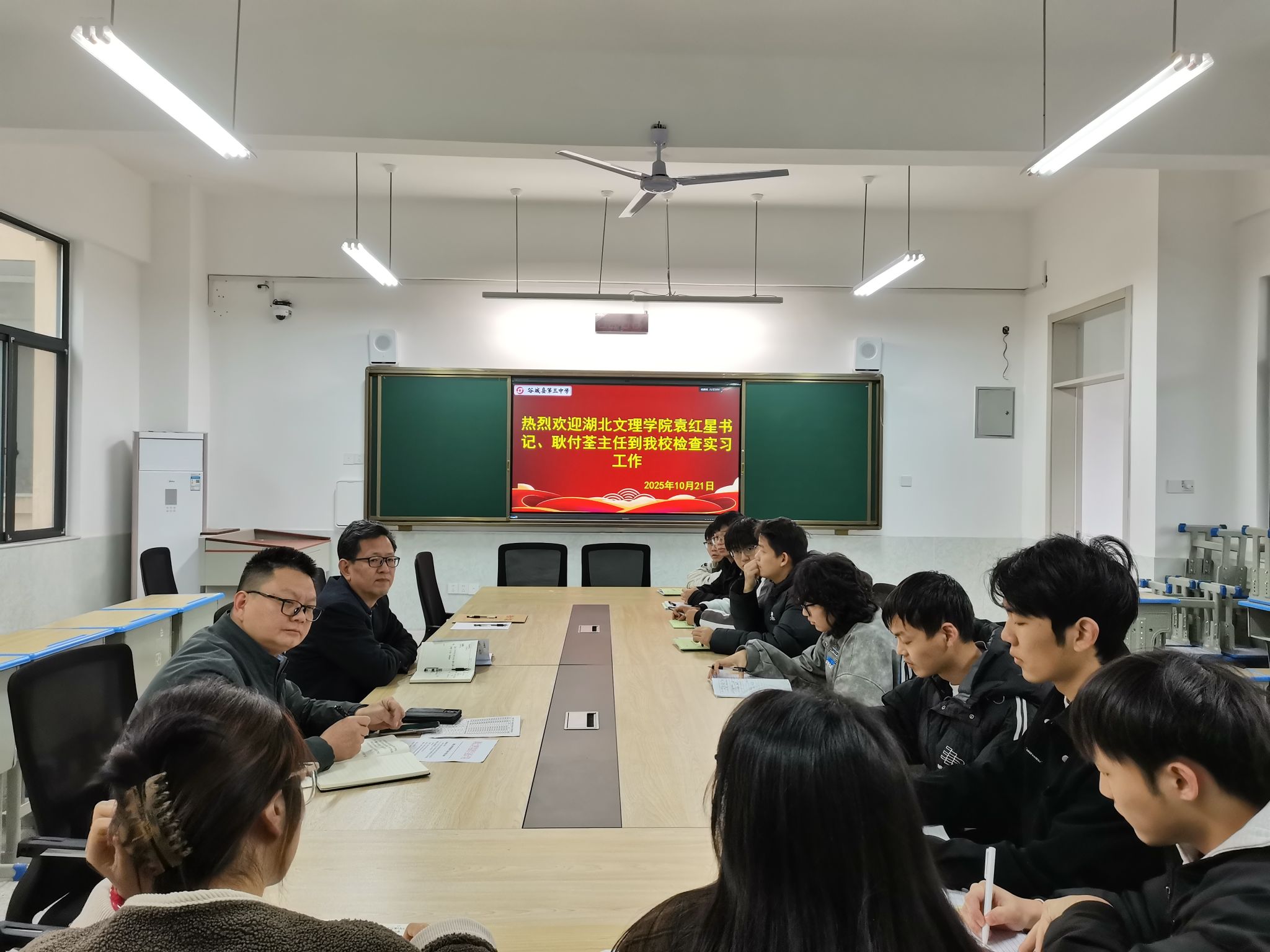 (数学与统计学院 通讯员 耿付荃)为更好地了解学生教学实习和实践教学情况,加强实习管理,增进与实习学校的交流合作,传递学院对实习生的关怀。2025年10月21-22日,数学与统计学院党委书记袁红星一行前往谷城县三中、谷城职教中心(谷城县二中)、襄阳市汉江高中、十堰外国语学校等走访调研,看望实习生。