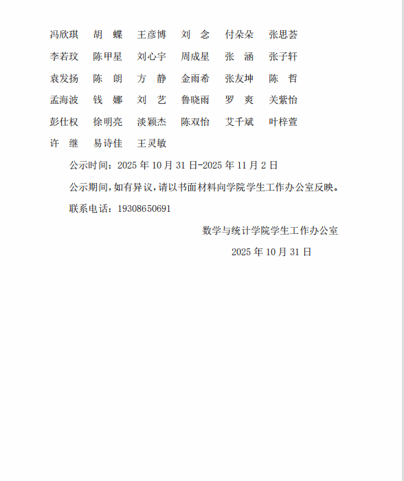 关于数学与统计学院2025年国家奖助学金评审结果的...