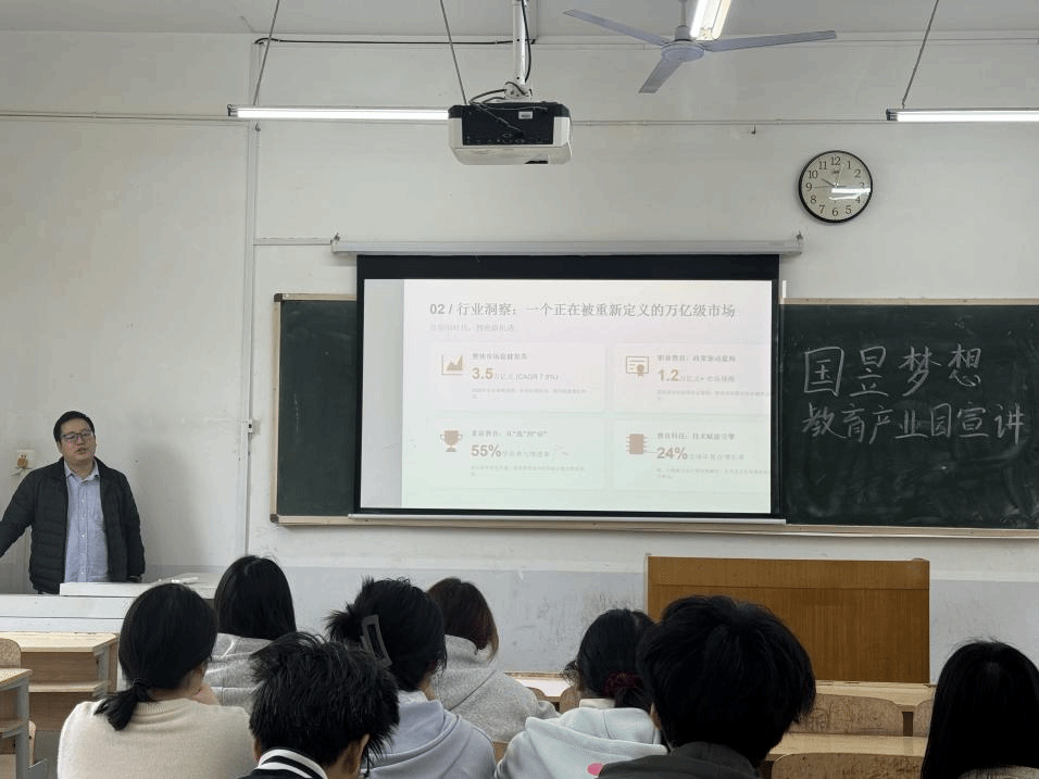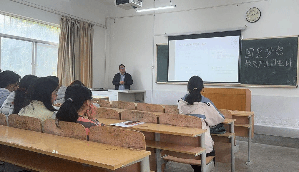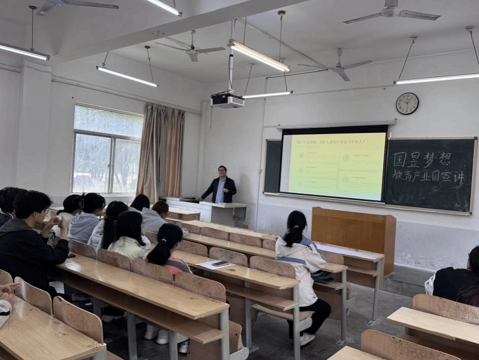 (数学与统计学院 通讯员 肖珊)为持续拓宽毕业生就业渠道,精准匹配教育行业人才需求,2026年4月15日上午,国昱梦想教育产业园专场宣讲会在N6-104教室举办。